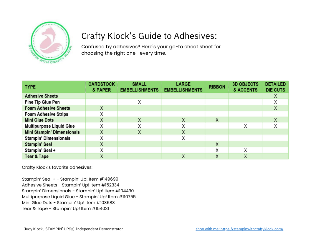 With so many different adhesives out there it can be difficult to determine which one will work best for your project. This handy guide offers suggections to help you decide which is best for your project. Keep it handy for easy reference.